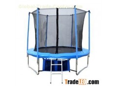Place of Origin: Zhejiang,Website:http://www.jstrampoline.com, China (Mainland)Max. User Weight: 100KGApproval: TUV/GS, CE, EN71 To EC type-examination certificate Registration No. 44 791 13190401Test in accordance with:EN71-1 A3: 2014EN71-2 A1: 2014EN71-3 A1: 2014EN71-14: 2014Key Features:frame Diameter: 8FT (244cm)frame Height: 51 cmLegs: 3 pcsPoles: 6 pcsSprings: 48 pcsDurable Jumping Mat provide the great fun for Kids and AdultsFoam padded poles and strong net provide the protection.8FT-3W-6P 8FT Trampoline ( DiaΦ244 cm, Height 51 cm) (Max. User Weight 100 KG) ITEM QTY SPECS 1) Top Rail 6Ø 38*1.5mm 2) W-Leg 3 Ø 38*1.5mm 3) Leg-Extension NONO 4) Jumping Mat 1PP,280g/m²;,Ø2020mm, 48 V-rings, circle 8 rows of stitching by strong polyester sewing thread 5) Springs 48 Φ22*L135mm (Φ3.0*28N) 6) frame Pad 1310g/m²; PVC(500D) 14mm EPE foam 130g/m²; PE 8FT Enclosure (Total Height 216 cm) ITEM QTY SPECS 1) Net 1PE, Height 165 cm Black colour, Inside type, 3*3mm mesh, with zipper entrance 2) Net Pole 6 Φ28*1.2mm 6 upper pole 6 lower pole, each wraped by blue EPE foam tube (Φ48*T10mm) 3) Clamp 6×2Fix Net Pole to Leg quicklyOptional Accessories: Ladder, Rain Cover, Shoe Bag, Anchor Kit, Basketball HoopWe also offer the replacement parts: Jumping Mat, Pad, Net, Rain Cover, Springs, etc..Optional Size: 6FT,8FT,10FT,12FT,13FT,14FT,15FT,16FTTrampoline:1) Steel Tubes: Q195, hot dip galvanized inside